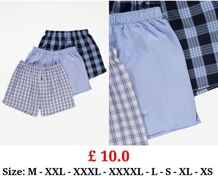 £ 10.0 Blue Checked Woven Boxers 3 Pack