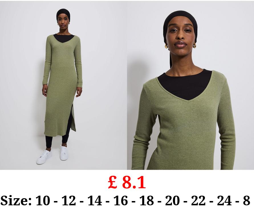 £ 8.1 Green Rib Knit Midi Dress