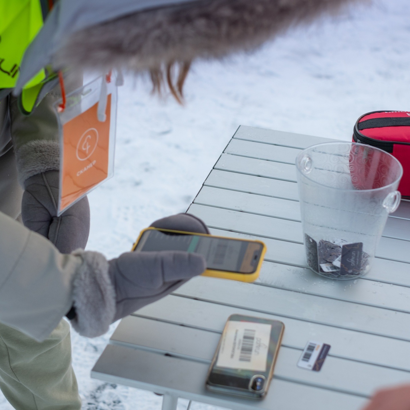 Ещё один пункт новых правил в действии: бесконтактное сканирование (штрихкод, если что, на задней крышке телефона) и сбор токенов в контейнер. В Тюмени всё было настолько в рамках правил, что даже манишек для замыкающих было две! И, конечно, музыка, праздник и хорошее настроение. Здесь так всегда!