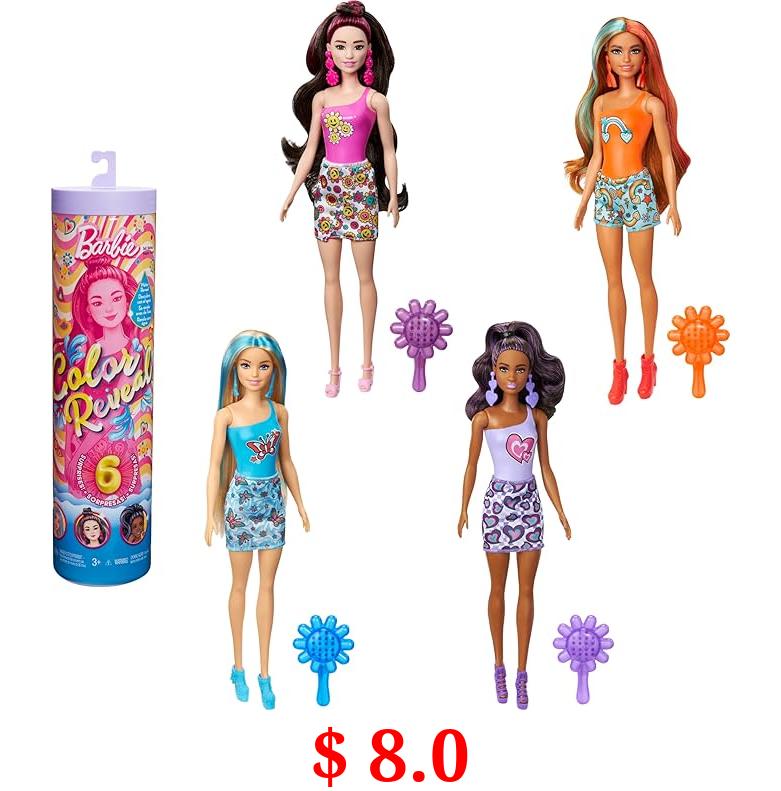 $ 8.0 Barbie Color Reveal Doll & Accessories with 6 Unboxing Surprises, Rainbow-Inspired Series with Color-Change Bodice, 1960s Theme