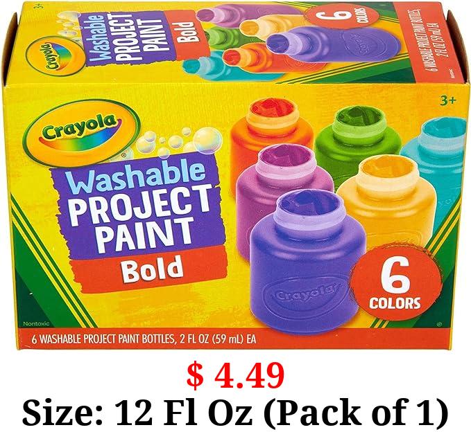 $ 4.49 Size: 12 Fl Oz (Pack of 1) Crayola Washable Kids Paint (6ct), Paint Set for Kids, Assorted Bold Colors, Art Supplies for Kids, Kids Crafts, Nontoxic