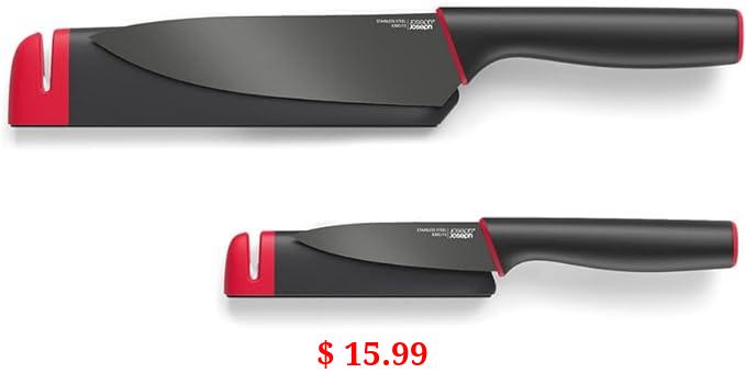 $ 15.99 Joseph Joseph Slice & Sharpen 6" Chef's Knive and 3.5" Paring Knife with Sharpening Protective Sheaths, Black