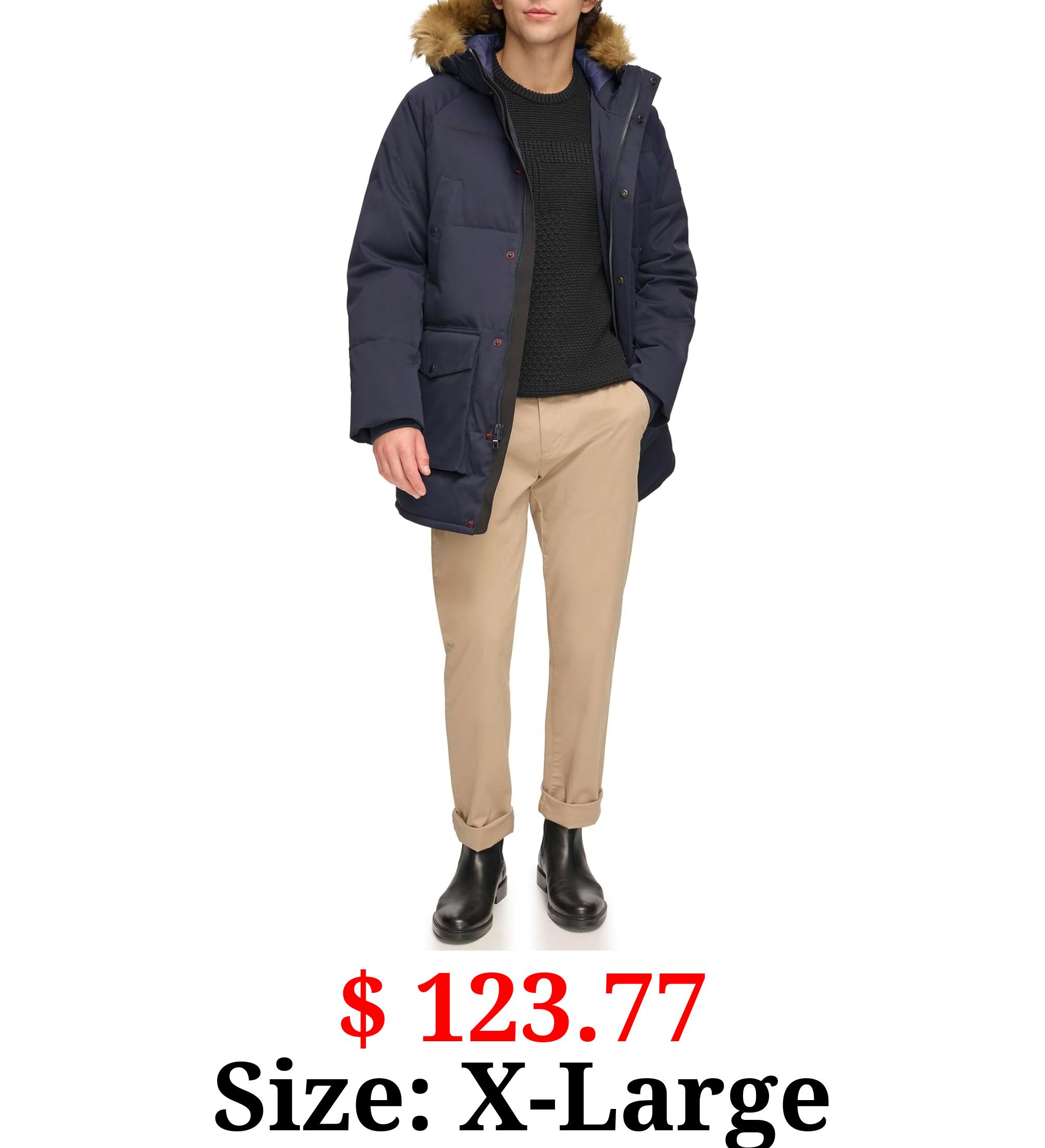 $ 123.77 Size: X-Large Tommy Hilfiger Men's Arctic Cloth Heavyweight Performance Parka Down Alternative Fur Lined Hood Outerwear Coat