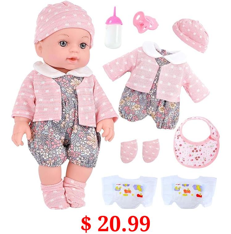$ 20.99 UZIDBTO Realistic Baby Doll Set in Gift Box - 12 Inch Newborn Alive Baby Doll with Accessories and Clothes with Pacifier Feeding Bottle Diapers Hat Bib Socks Stuff Gift Idea for Ages 3+