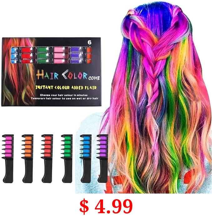 $ 4.99 Hair Chalk Comb LAWOHO 6 Colors Temporary Hair Dye Marker Gifts for Girls Kids Adults for Halloween Christmas Birthday Party, Cosplay