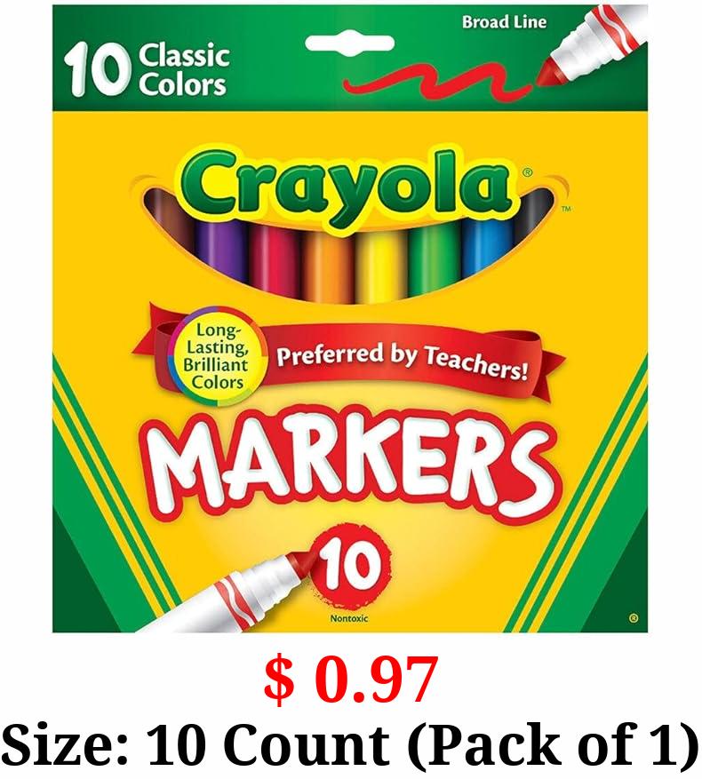 $ 0.97 Size: 10 Count (Pack of 1) Crayola Broad Line Markers, Classic Colors 10 Each, 10 Count (Pack of 1)