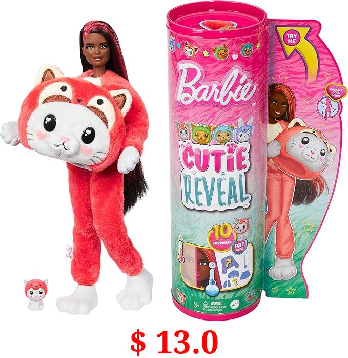 $ 13.0 Barbie Cutie Reveal Doll & Accessories with Animal Costume & 10 Surprises Including Color Change, Kitten as Red Panda in Costume-Themed Series