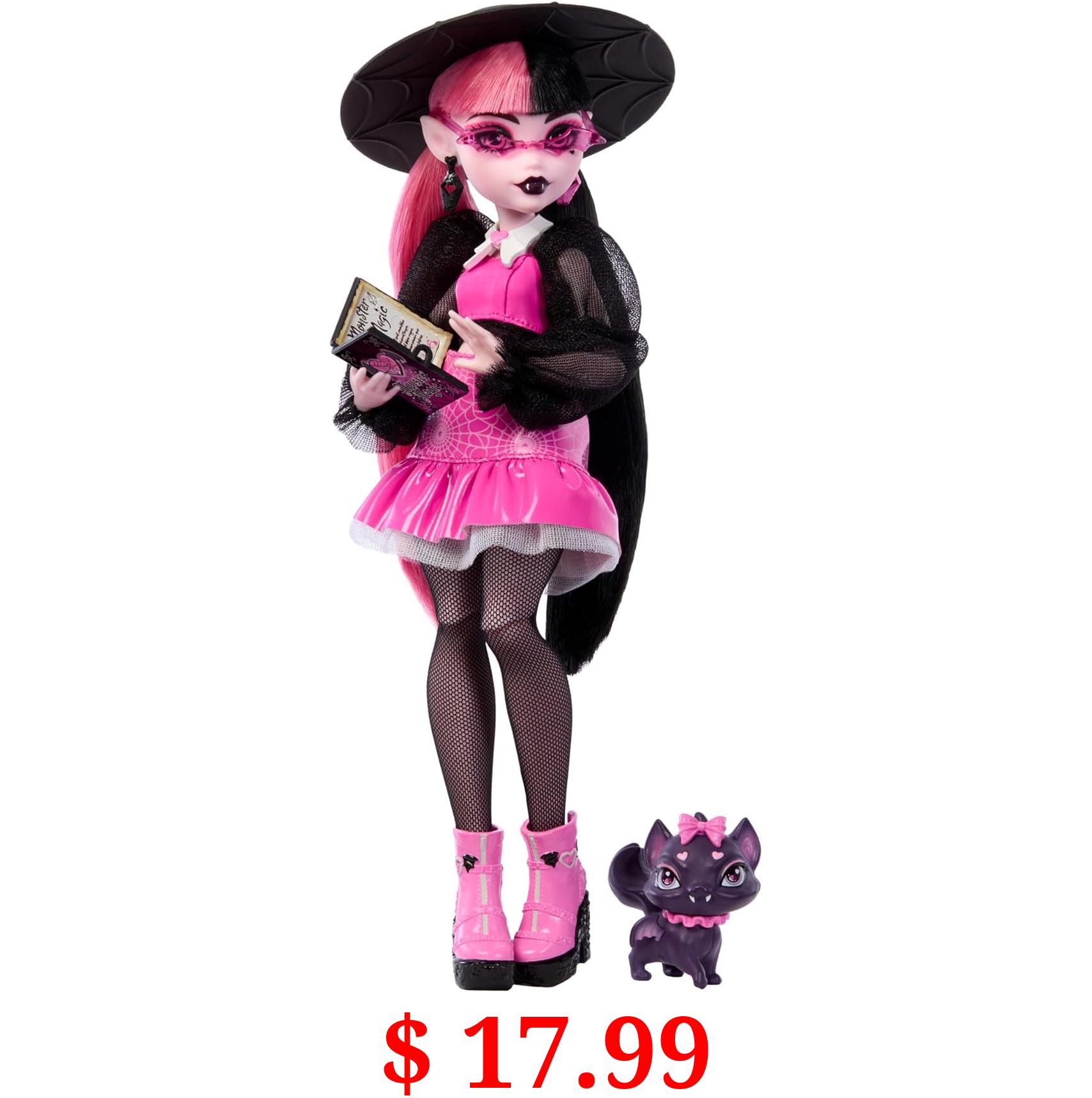 $ 17.99 Monster High Draculaura Doll with Pet Bat-Cat Count Fabulous & Accessories Like Backpack, Spell Book, Bento Box & More