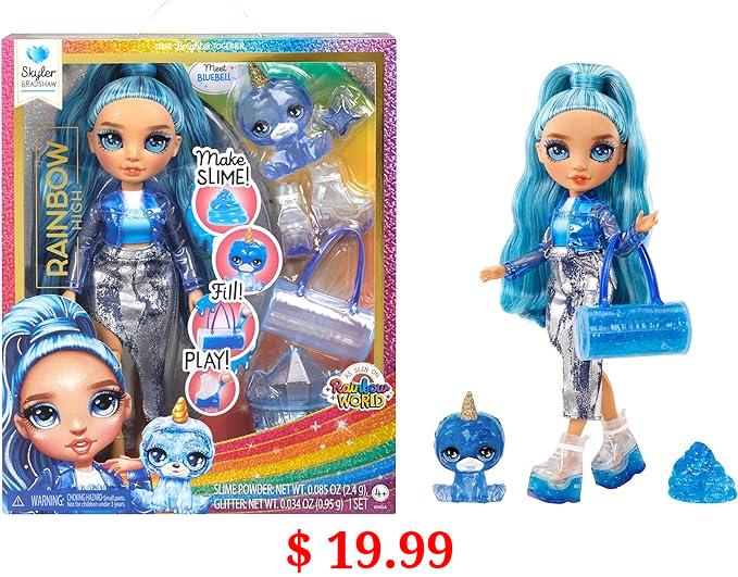 $ 19.99 Rainbow High Skyler, Blue with Slime Kit & Pet, 11" Shimmer Posable Fashion Doll with DIY Sparkle Slime, Magical Yeti Pet, Fun Play Accessories. Great Toy Gift for Girls Kids Ages 4-12 Years