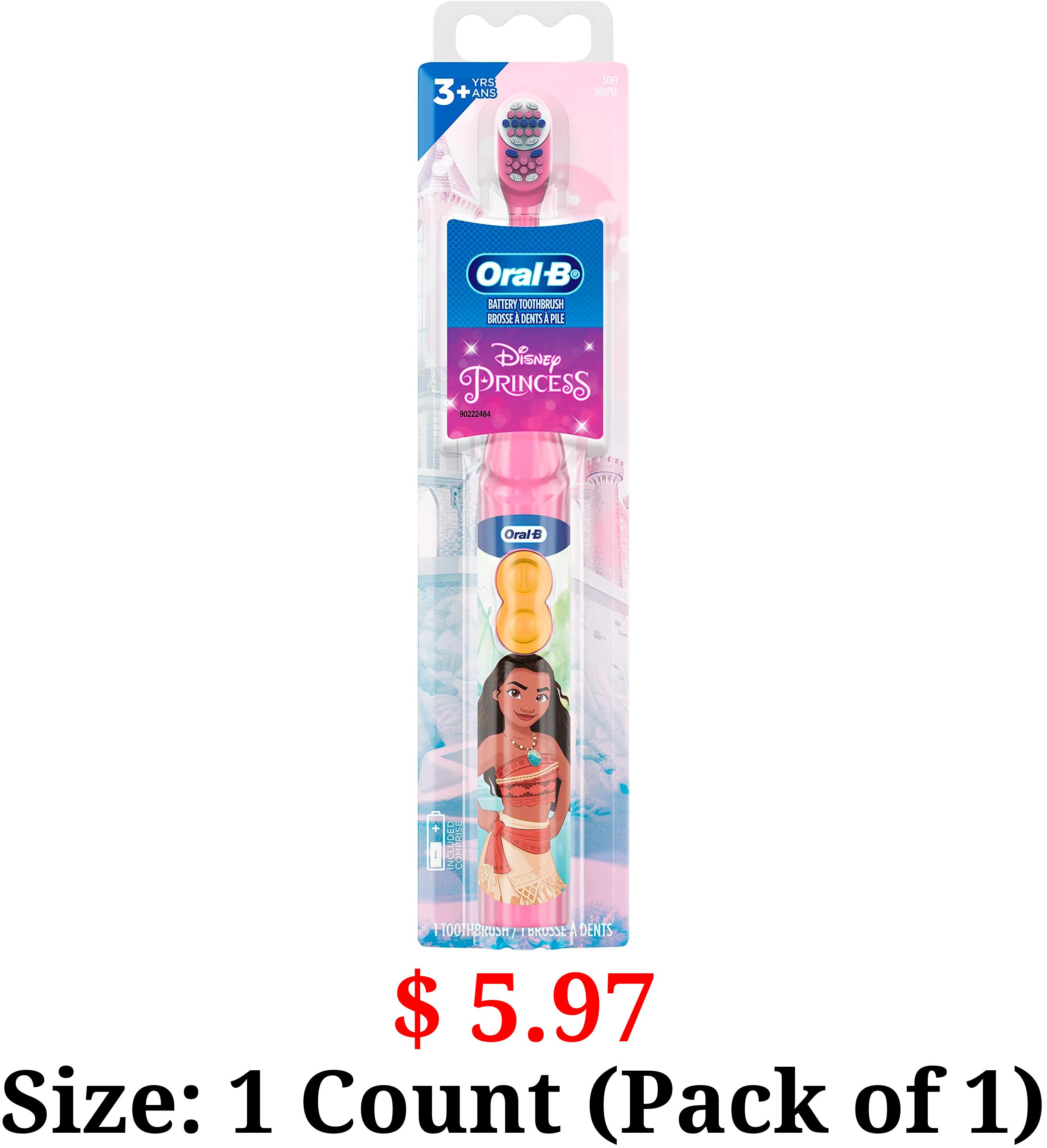 $ 5.97 Size: 1 Count (Pack of 1) Oral-B Pro-Health Stages Disney Princess Battery Power Kids Electric Toothbrush (Packaging May Vary)