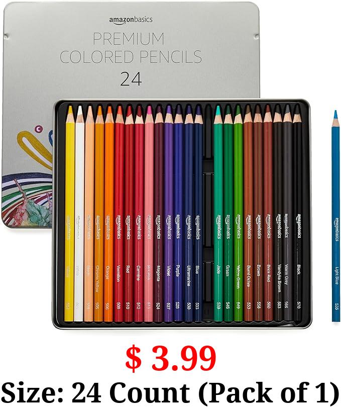 $ 3.99 Size: 24 Count (Pack of 1) Amazon Basics - Premium Colored Pencils, Soft Core, 24 Count (Pack of 1), Multicolor