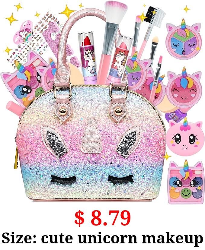 $ 8.79 Size: cute unicorn makeup Kids Makeup Kit for Girl - Makeup Girl Toys,Little Girls Makeup Kit,Non-Toxic Toddlers Make Up,Kids Toys for Girls,Children Princess Play Makeup Set,Teen Christmas Birthday Gifts for 4-12 Year Old