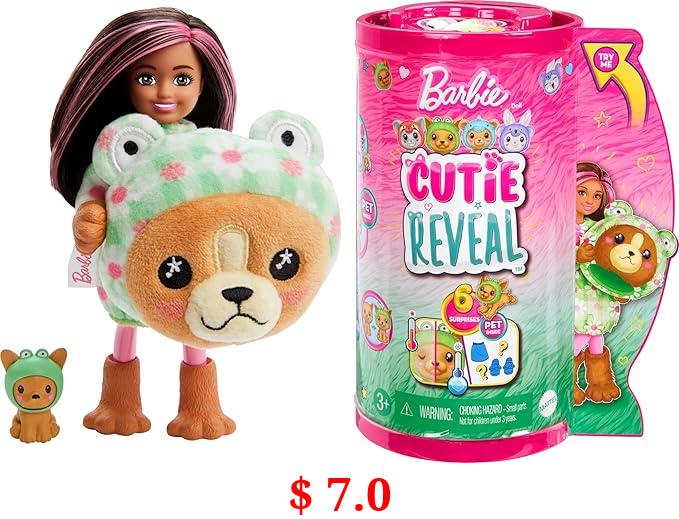 $ 7.0 Barbie Cutie Reveal Chelsea Doll & Accessories, Animal Plush Costume & 6 Surprises Including Color Change, Puppy as Frog