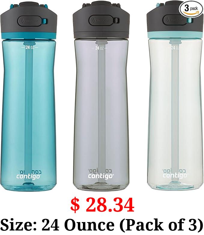 $ 28.34 Size: 24 Ounce (Pack of 3) Contigo Ashland 2.0 Water Bottle with AUTOSPOUT Lid | Tritan Water Bottle, 24oz., 3 Pack, Juniper & Sake & Bubble Tea
