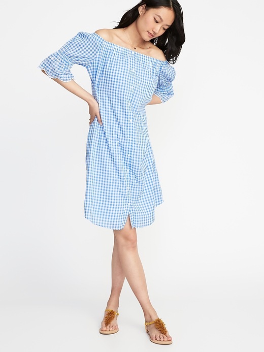 💰 $14.97-$36.97 Off-the-Shoulder Button-Front Gingham Dress for Women