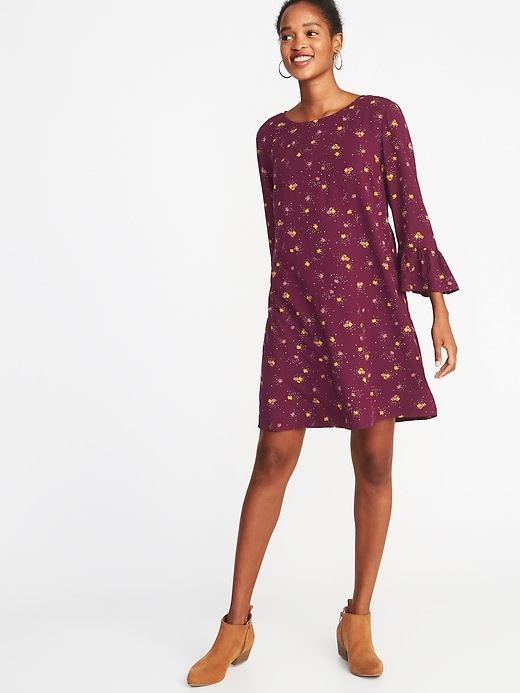 💰 $7.97-$9.97 Floral-Print 3/4-Sleeve Shift Dress for Women