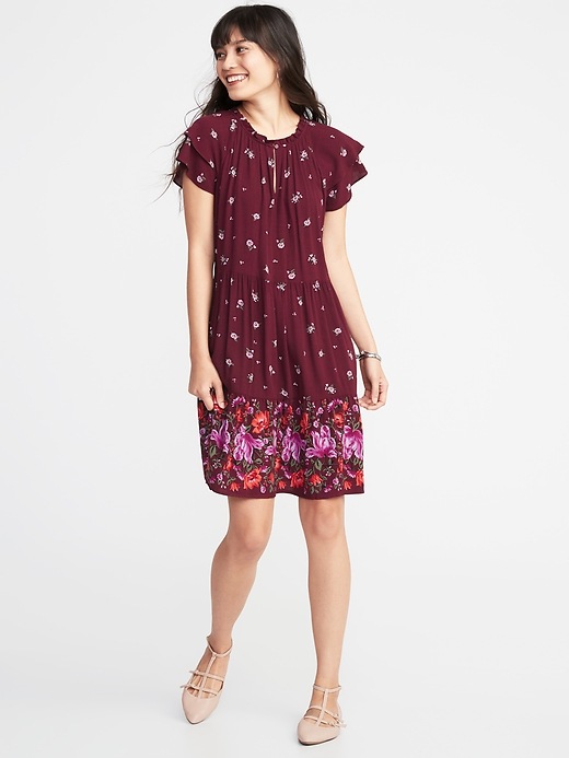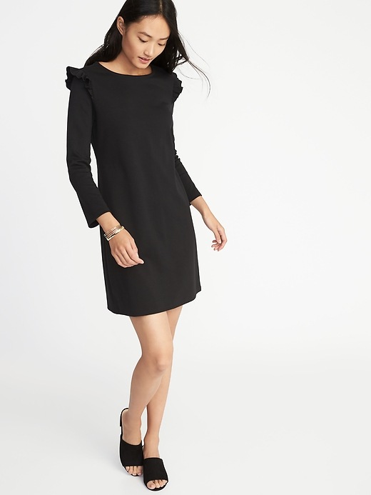 💰 $15.00-$19.97 Ruffle-Trim Ponte-Knit Tee Dress for Women