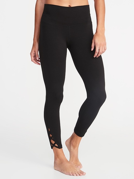 💰 $15.00-$22.99 *Best Seller* High-Rise 7/8-Length Lattice-Hem Yoga Leggings for Women