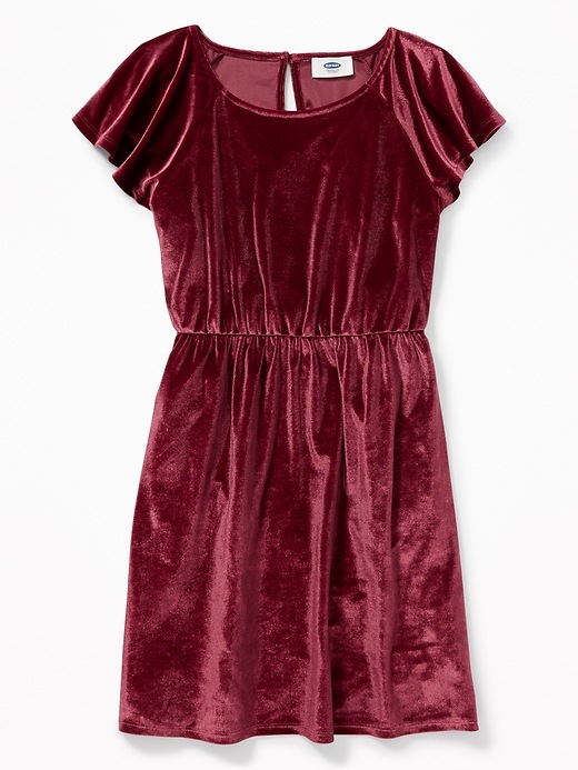 💰 $9.97 Velvet Waist-Defined Flutter-Sleeve Dress for Girls