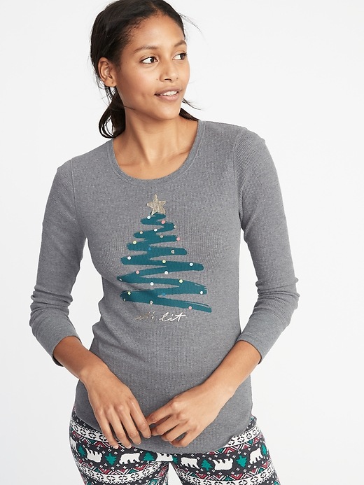 💰 $1.97-$4.97 Slim-Fit Holiday Graphic Thermal-Knit Top for Women