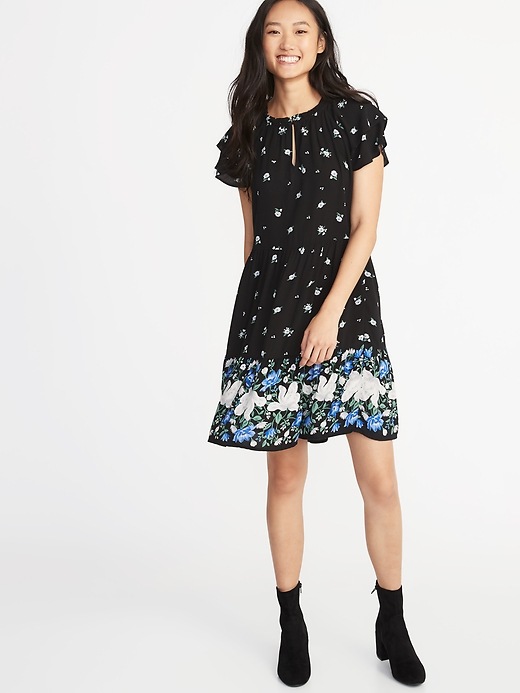 💰 $16.97 High-Neck Ruffle-Trim Swing Dress for Women