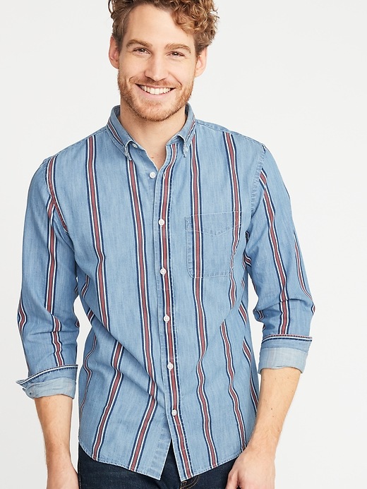 💰 $28.00-$30.00 Slim-Fit Striped Twill Everyday Shirt for Men