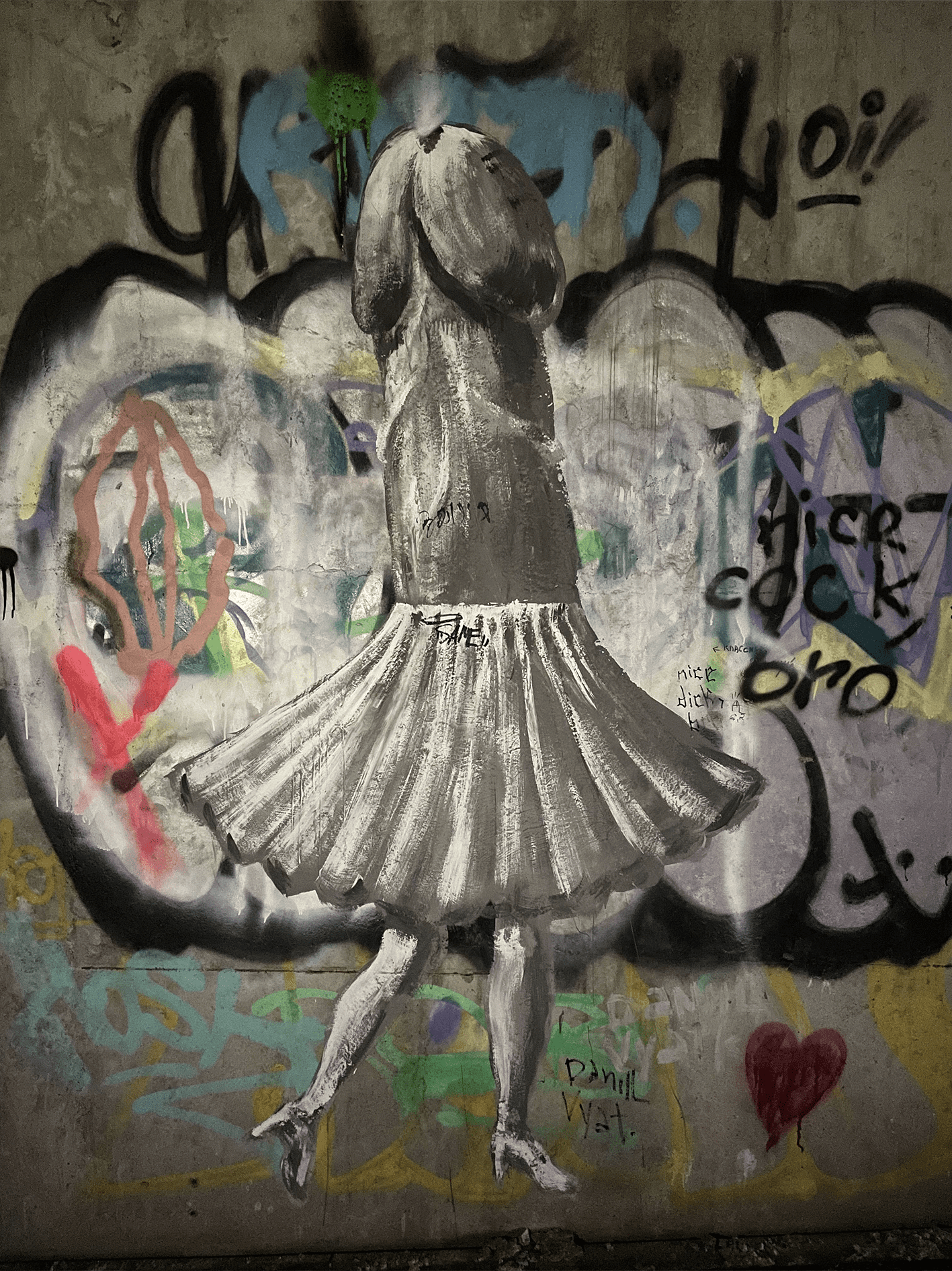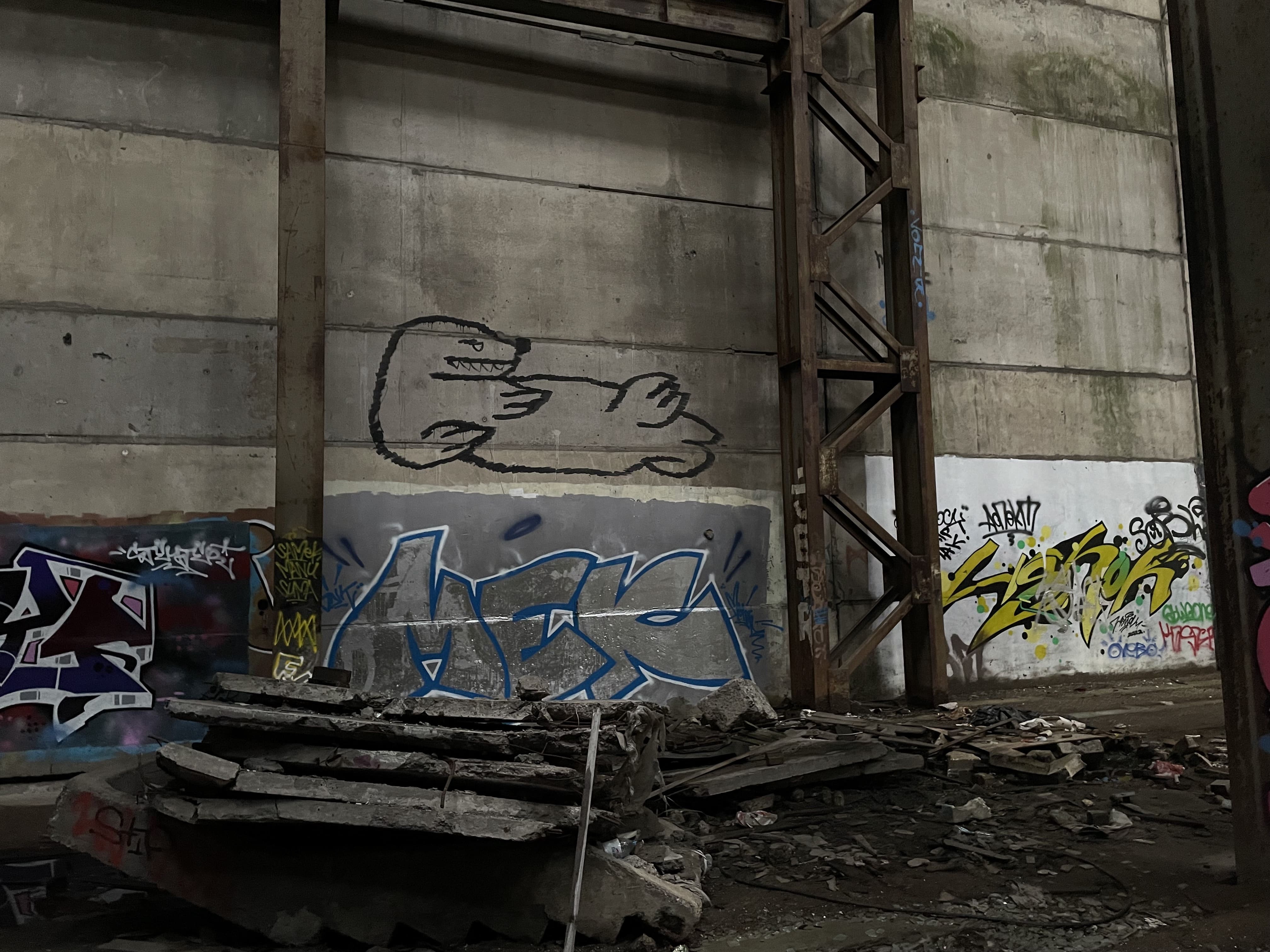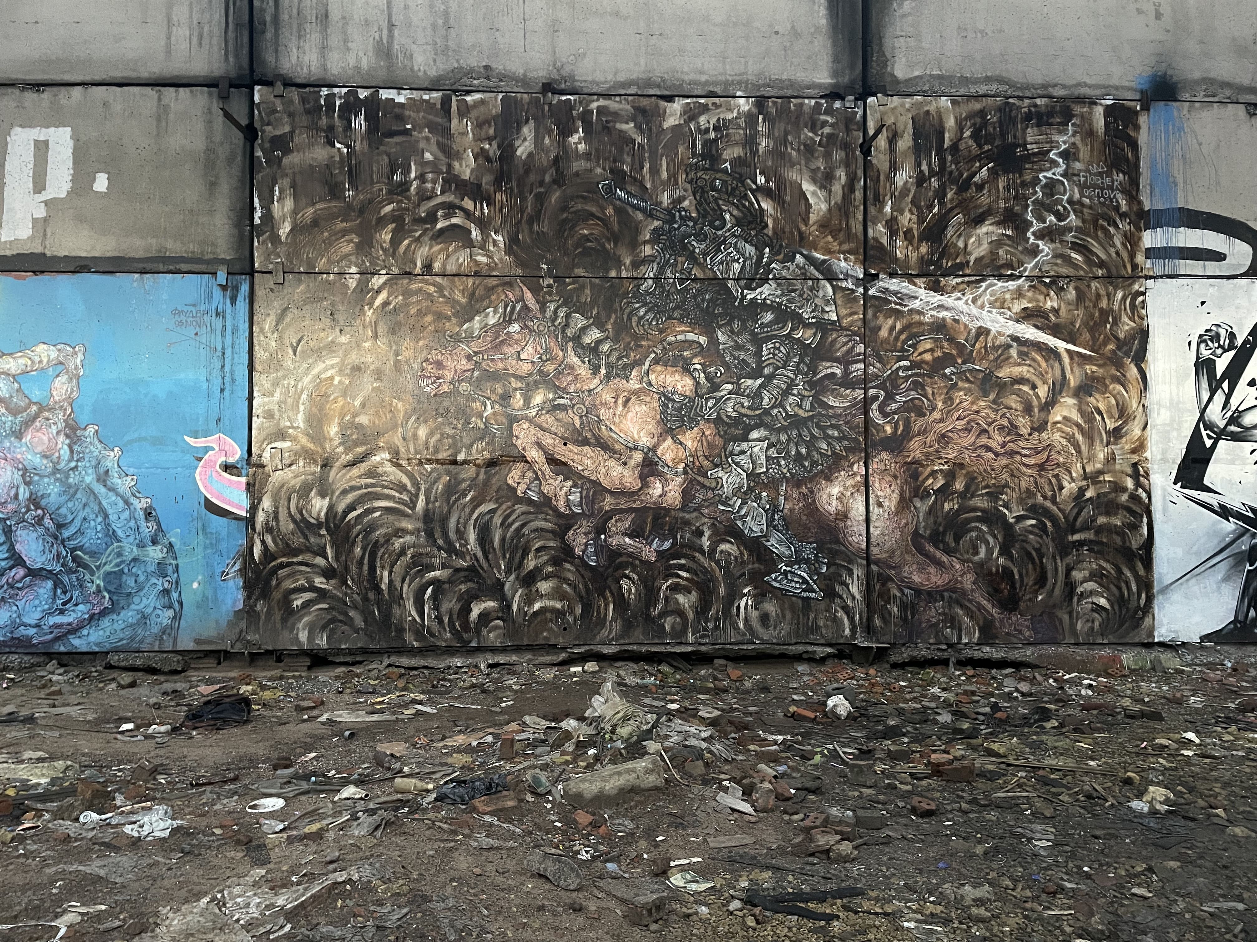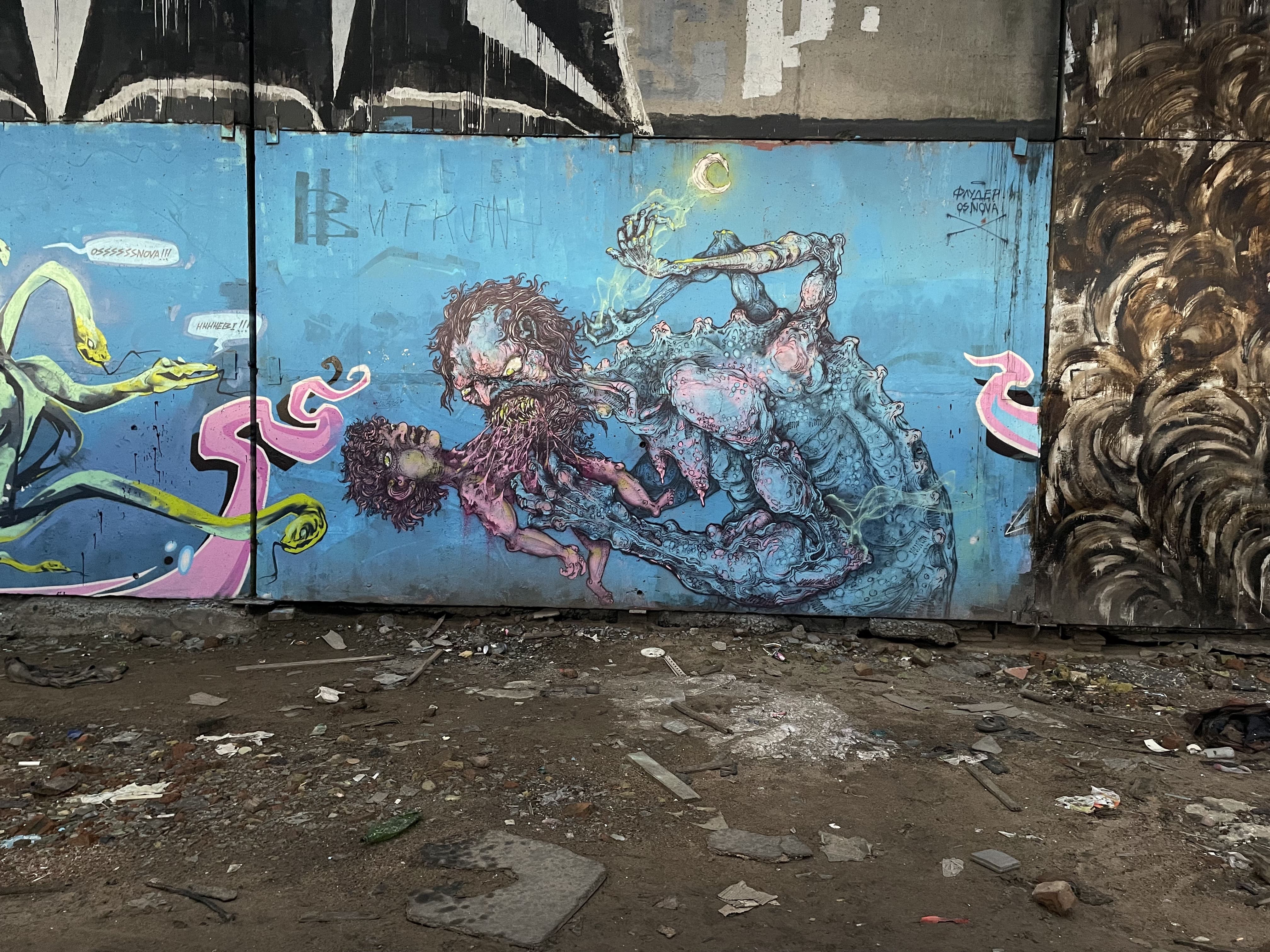 Некоторые локации ощущались как алтарь или храм уличной культуры, где можно стоять и пропитываться энергией. Представлять, сколько автор проводил времени, ловил вдохновение, а, может, стены сами подсказали что-то. И там же есть это равноправие, где рядом с технически трудной работой может быть написано что-то максимально экспрессивное. Но в этом и магия уличной культуры, институции в этом пространстве просто убьют этот вайб.
