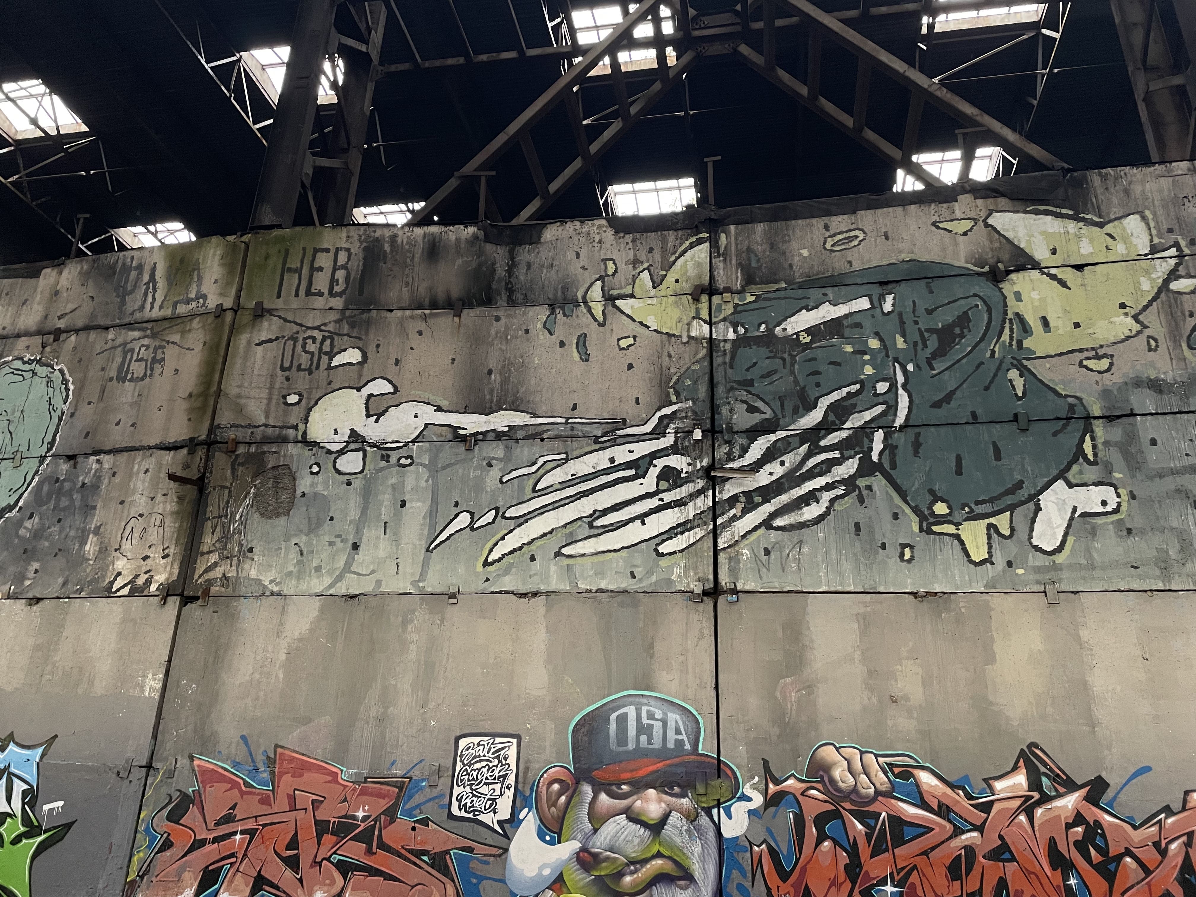 Коля организует активности на этих местах, но и без этого от одного только вида ты чувствуешь, сколько субкультурных эпох прошло через эти места. Граффити тут уживаются со стрит-артом, сменяя друг друга слой за слоем. Для исследователя это настоящий рай.