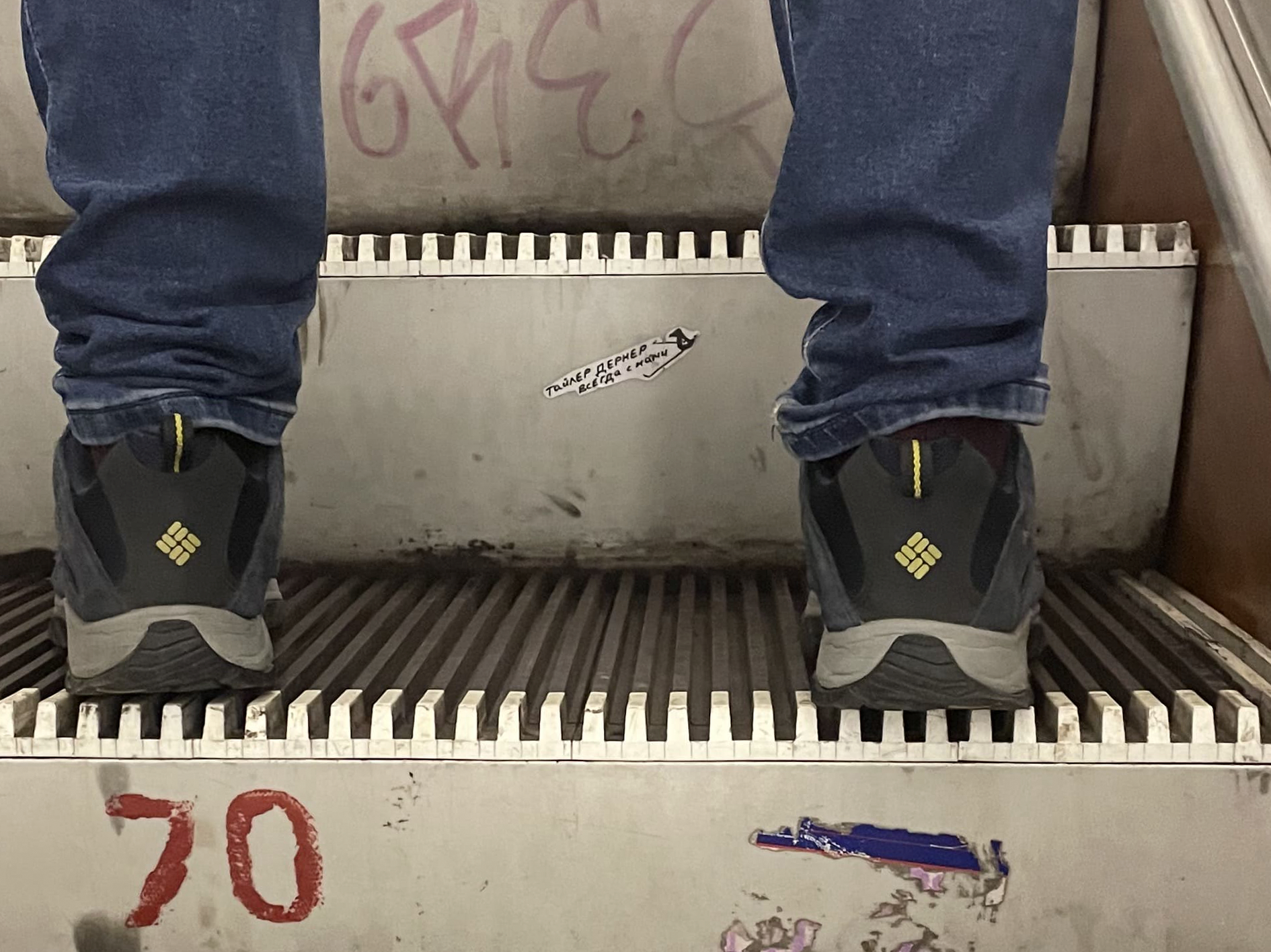 Уличное искусство — самая адаптивная к среде и условиям форма. Стены чистят, поэтому перебираемся на знаки и столбы (чисто мой взгляд стикер-артиста), в Питере все еще можно увидеть огромное количество стикеров от авторов, которые уже не живут в России или были в этом городе где-то в середине 2010-х. Особенно мне нравятся подмеченные в прошлые путешествия стикеры на ступенях метрополитена, они там литые и на них можно наклеить. Представляю, как мало живут наклейки в метро, всегда радуешься, что кто-то продолжает делать.
