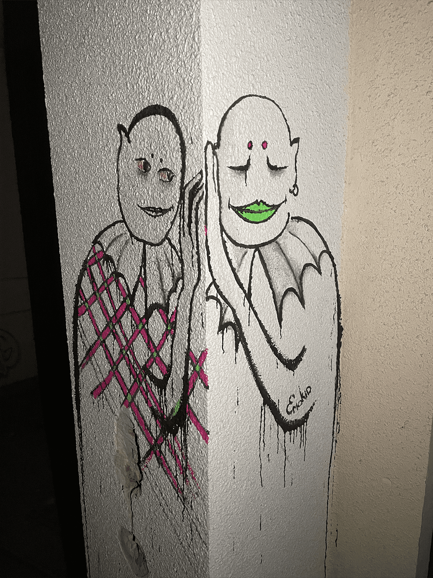 Начав с привычной для моих форматов прогулку по центру, мы начали блуждать по прекрасным живописным дворам города. Ебучие лабиринты бухого минотавра — я бы в жизни не нашел ничего, если бы не гид или хотя бы карты из сети. С улицы на улицу, из двора в двор, много истории города, но не так уж много контекста или работы со средой, закаливающее количество историй из серии «тут было это». Те редкие стены, что не отдраивающая до блеска каждый день, угадываются безошибочно, ведь количество слоев надписей на них растет постоянно, можно увидеть и послания из 2000-х.
