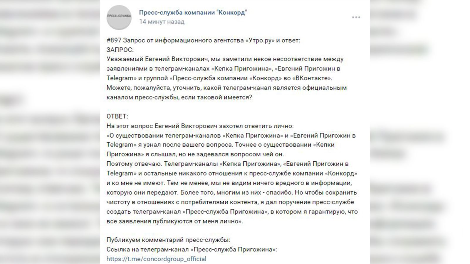 пка пригожина телеграмма канал