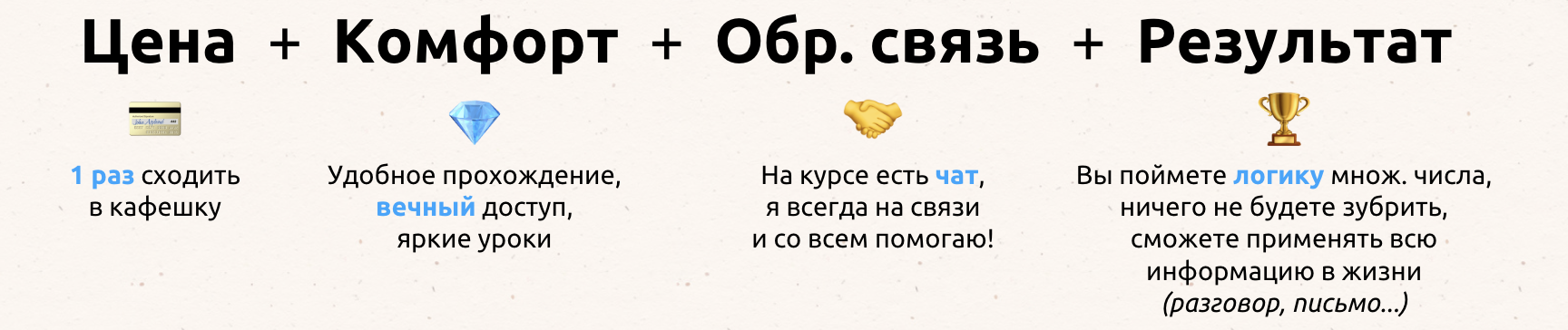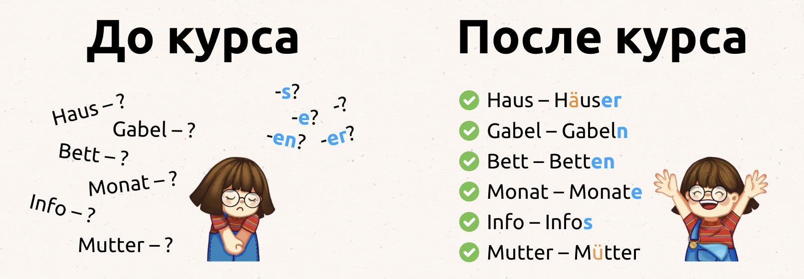 Курс "Множественное число" стартует впервые, но у меня много отзывов на курс по артиклям (где учимся логически подбирать артикль/род к существительному).