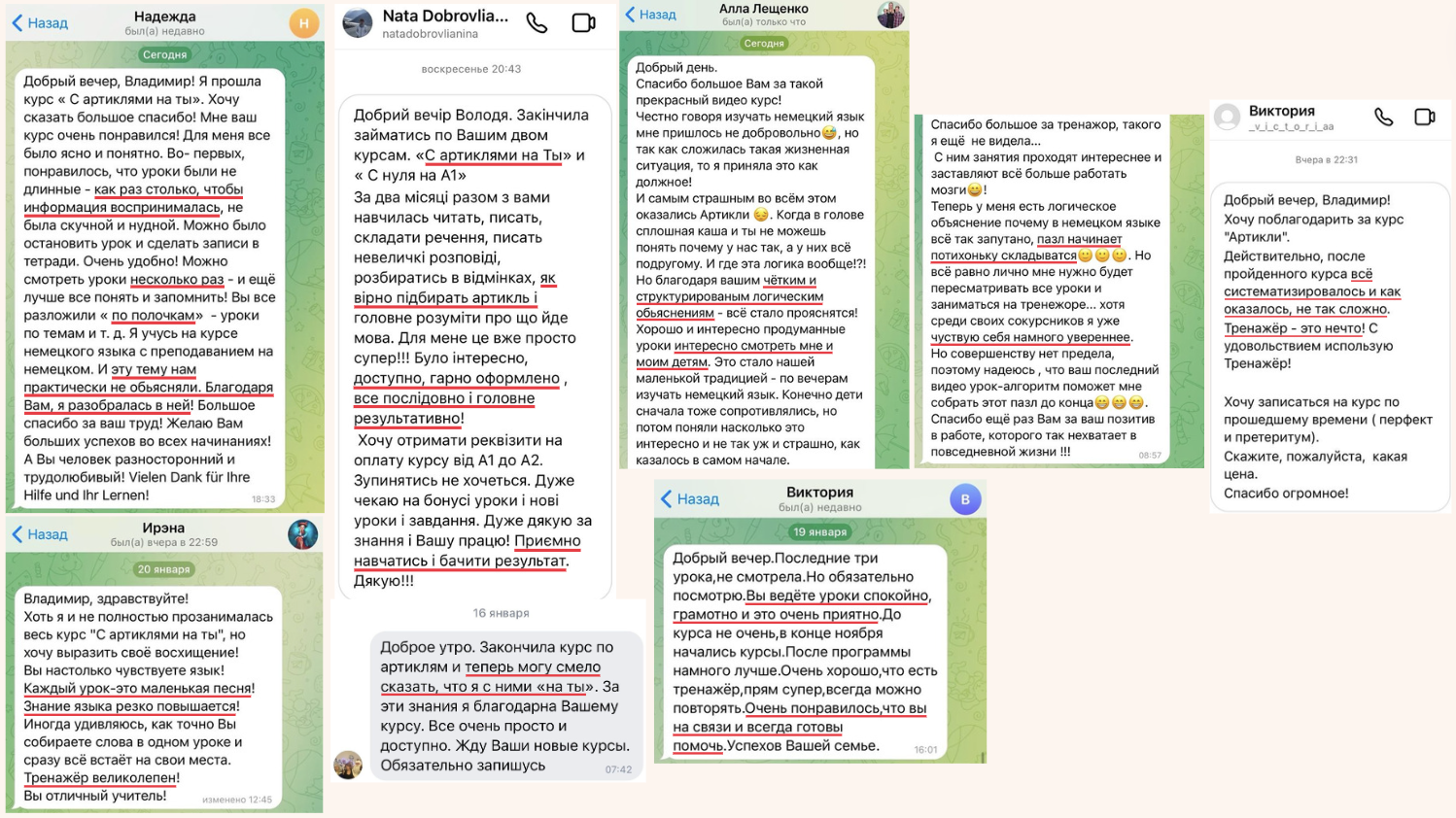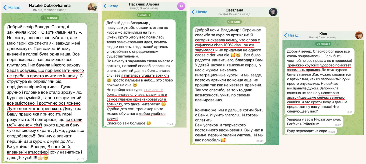 Курс построен от простого к сложному. Понятно и полезно будет каждому человеку, который учит немецкий, на любом уровне.