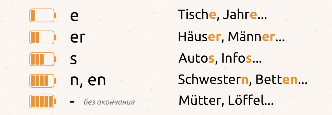 🧠 В немецком своя логика. Вариантов для множ. числа минимум 5 (еще и умлауты).