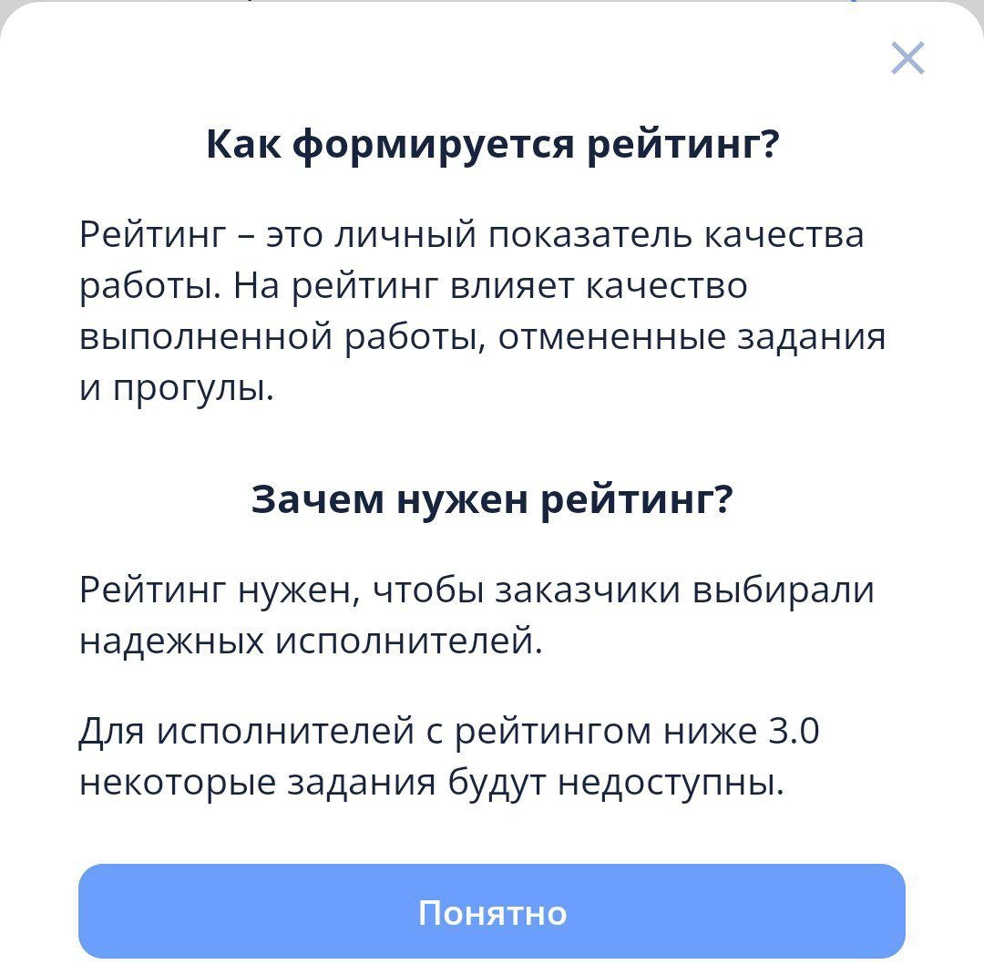 - Повышайте рейтинг! Пунктуальные исполнители получают доступ к более выгодным заданиям.