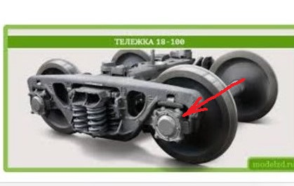 Смотрим на тележку вагона. Вот та штука, что стрелкой отмечена, называется букс, а там крышка, которую надо открыть, свинтив крепёжные болты. В открывшуюся дыру засыпаем жменю чего ни будь металлического. Можно мелкие гвозди, гайки, шурупы, в общем чего душа пожелает. Закручиваем всё это обратно и валим домой. А дальше сидим в Интернете и мониторим новости с полей.