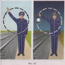 А есть ещё один, ну очень простой способ. Делать это лучше ночью. Выходим к железной дороге с мощным фонарём в таком месте, чтобы пути далеко просматривались и нас машинист мог заметить. Видим поезд, зажигаем фонарь в сторону поезда и вращаем им против часовой стрелки, вот как на картинке. Это сигнал срочной остановки и называется он «впереди опасность». Машинист должен, увидев этот сигнал, остановить поезд. А дальше действуй по обстановке. Можешь сбежать, имея уверенность, что на 1,5 – 2 часа ты заблокировал движение на этом участке. А можешь выгнать машинистов, зажать газ локомотива и пусть себе едет. Какой русский локомотив не любит быстрой езды…И машинисты в безопасности. Тут вообще поле для фантазий. Например, можно флюгер с фонарём поставить и пусть себе крутится. Дальше сам выдумывай…