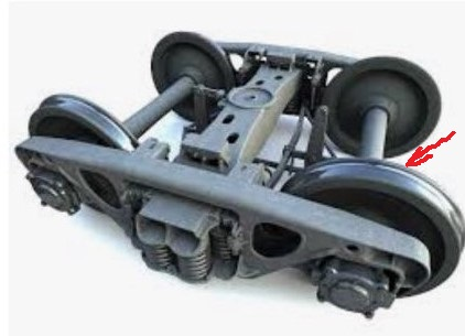 Внимательно смотрим на колесо тележки вагона. Стрелочкой отмечена поверхность качения.