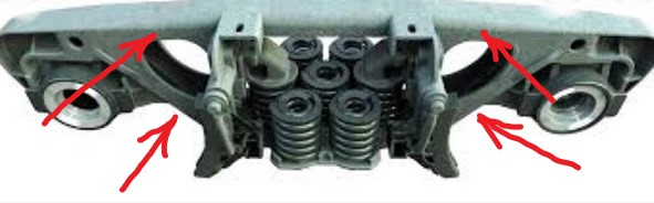 Кардинальное средство. Берём ножовку по металлу и надпиливаем боковую раму колёсной тележки в указанных местах (красные стрелки). В принципе можно и в одном месте, но тогда пропил нужно делать поглубже. Говорят что долго с этим возиться не придётся. Такая рама на ходу довольно быстро развалится и вагончики схлопнутся под насыпь.