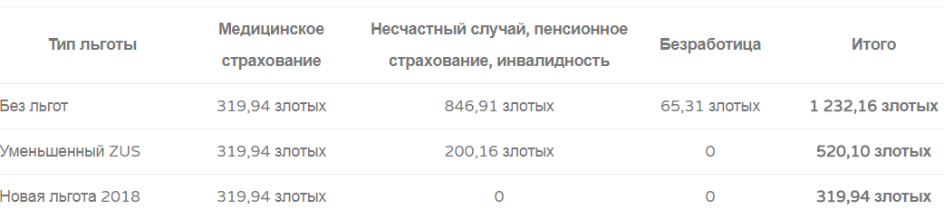 Предыдущее обязательство по уплате страховых взносов было очень болезненным для начинающих предпринимателей, поскольку взносы на социальное страхование (в ZUS) должны уплачиваться даже в случае отсутствия прибыли у предприятия. Так, в самом начале деятельности компании эти платежи приобретают вид дополнительных расходов, которые финансируются за счет собственных средств начинающего бизнесмена. Ведь их компании изначально понесут значительные финансовые затраты еще до того, как будет получен первый доход.