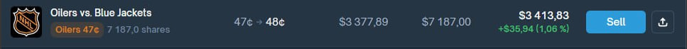 - Sell - кнопка, переводящая в режим продажи ставки для выбранного исхода