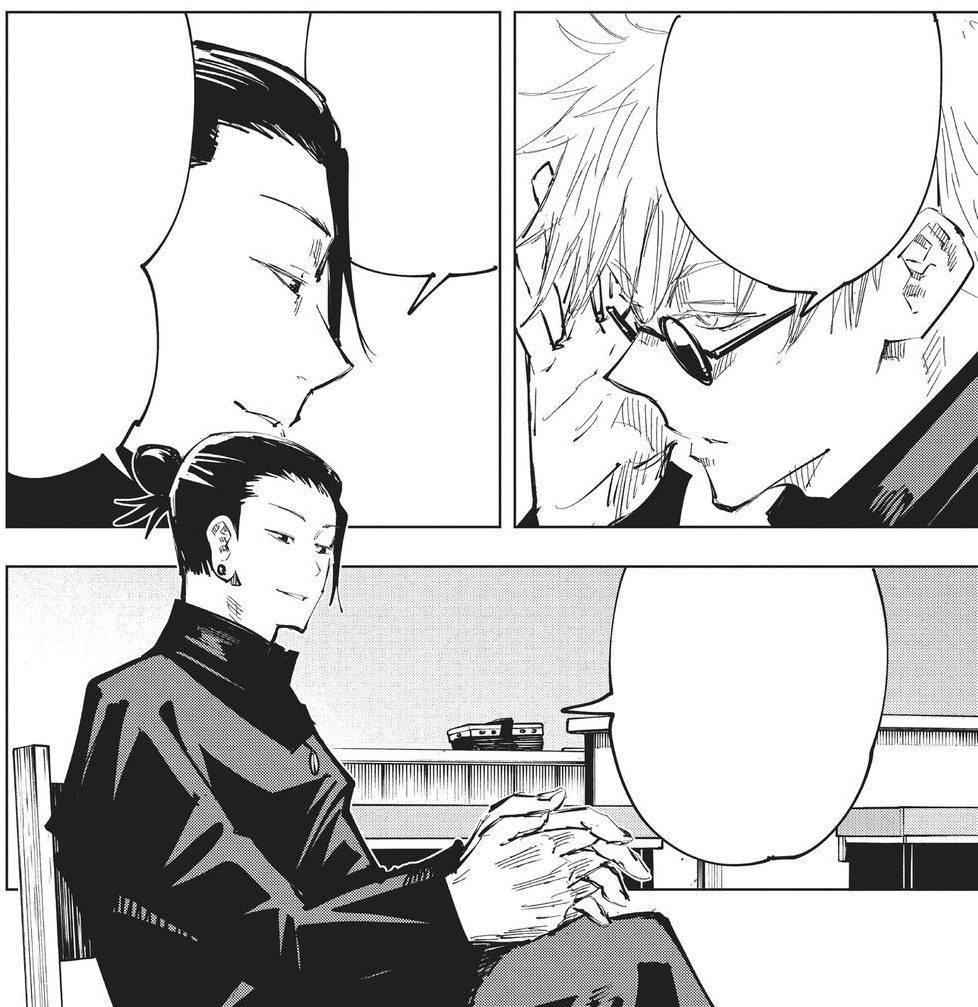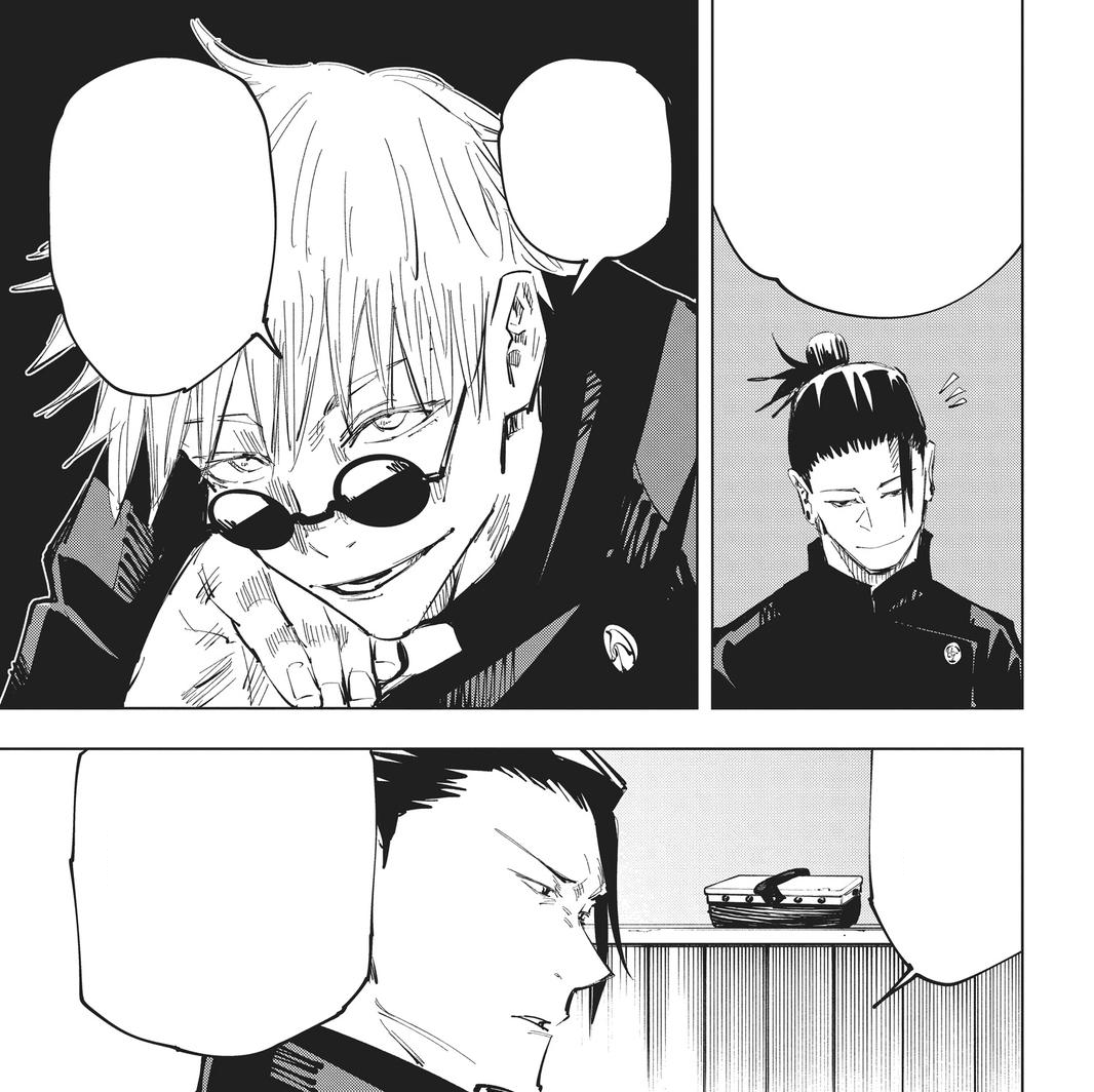 Сугуру: "Ничего не поделаешь. Такова наша задача... Слабых мы защищаем, а сильных держим под контролем. Иными словами, Сатору, и маги, и проклятые техники существуют только ради защиты не-магов".