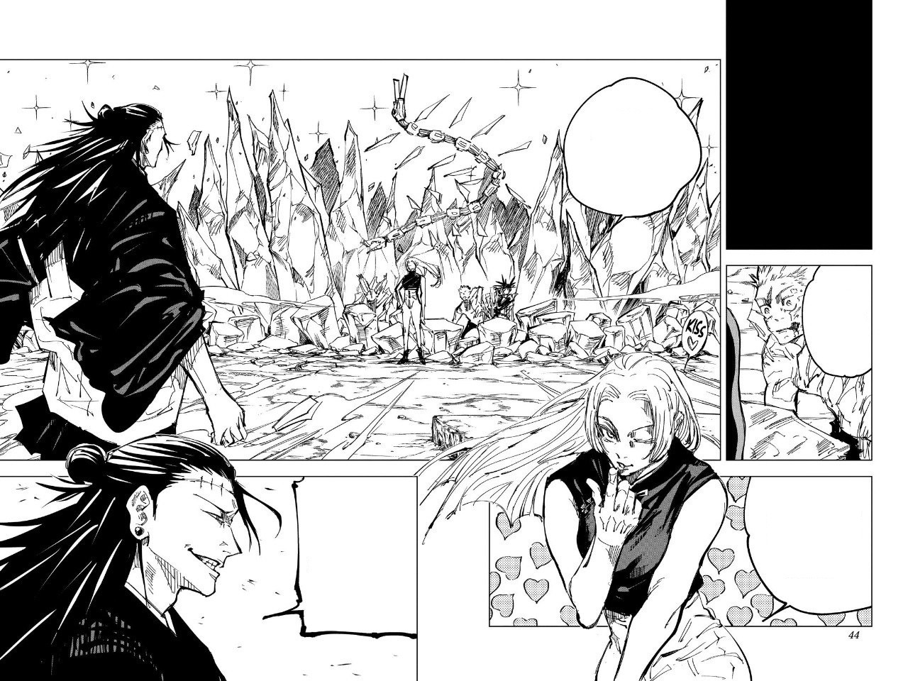 Приближаясь к храму сектантов, Гэто встречает проклятие, оставшееся от Тодзи, и забирает его себе. После встречи с Тодзи один участник дуэта обретает проклятие, а другой – буквально «благословление».