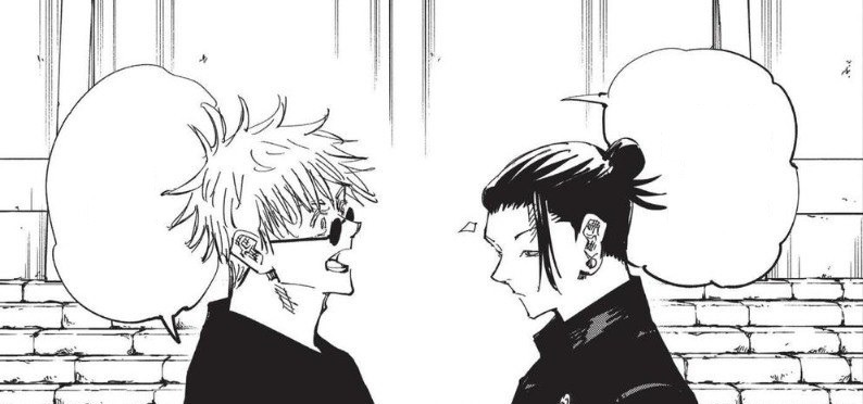Он ищет оправдания своим действиям вовне. Как и в самом начале, ему всё ещё нужен смысл. И смысл в том, что не-маги разрушают мир, плодя бесчисленные проклятия – смысл в том, что это можно прекратить, если убивать всех не-магов до тех пор, пока на земле не останутся одни маги. Смысл в том, что Сатору под силу сделать нечто такое, потому что он сильнейший. Но ведь и Сугуру тоже сильный, а значит и ему под силу нечто такое же.