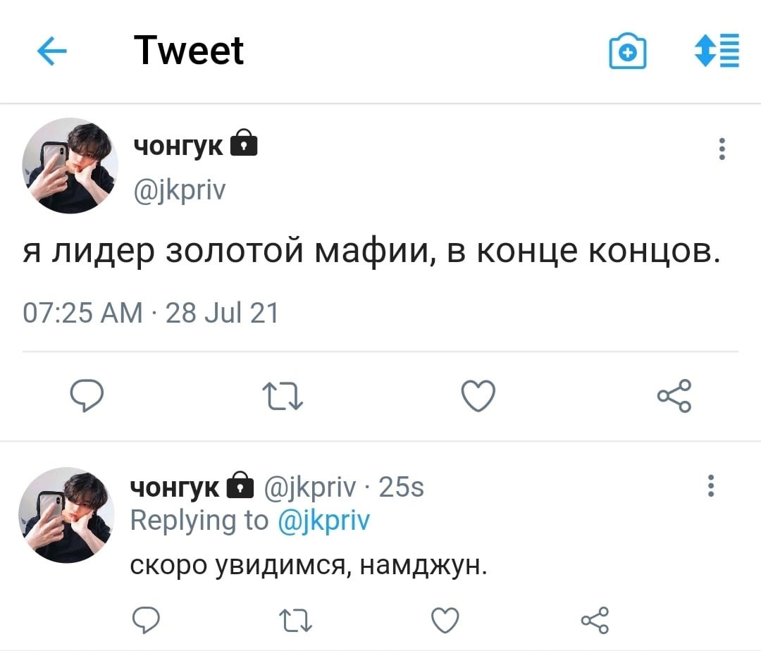 — Так вот. У нас были и другие причины, помимо Чимина, почему мы присоединились к твоей мафии, — Чон слегка растерялся.