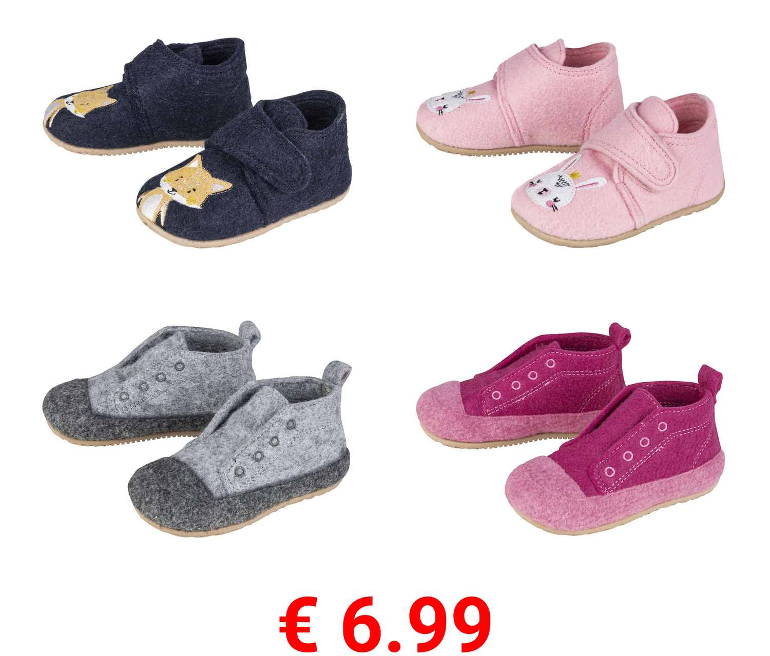 € 6.99 lupilu® Kinder Filz-Hausschuhe aus weichem Filz