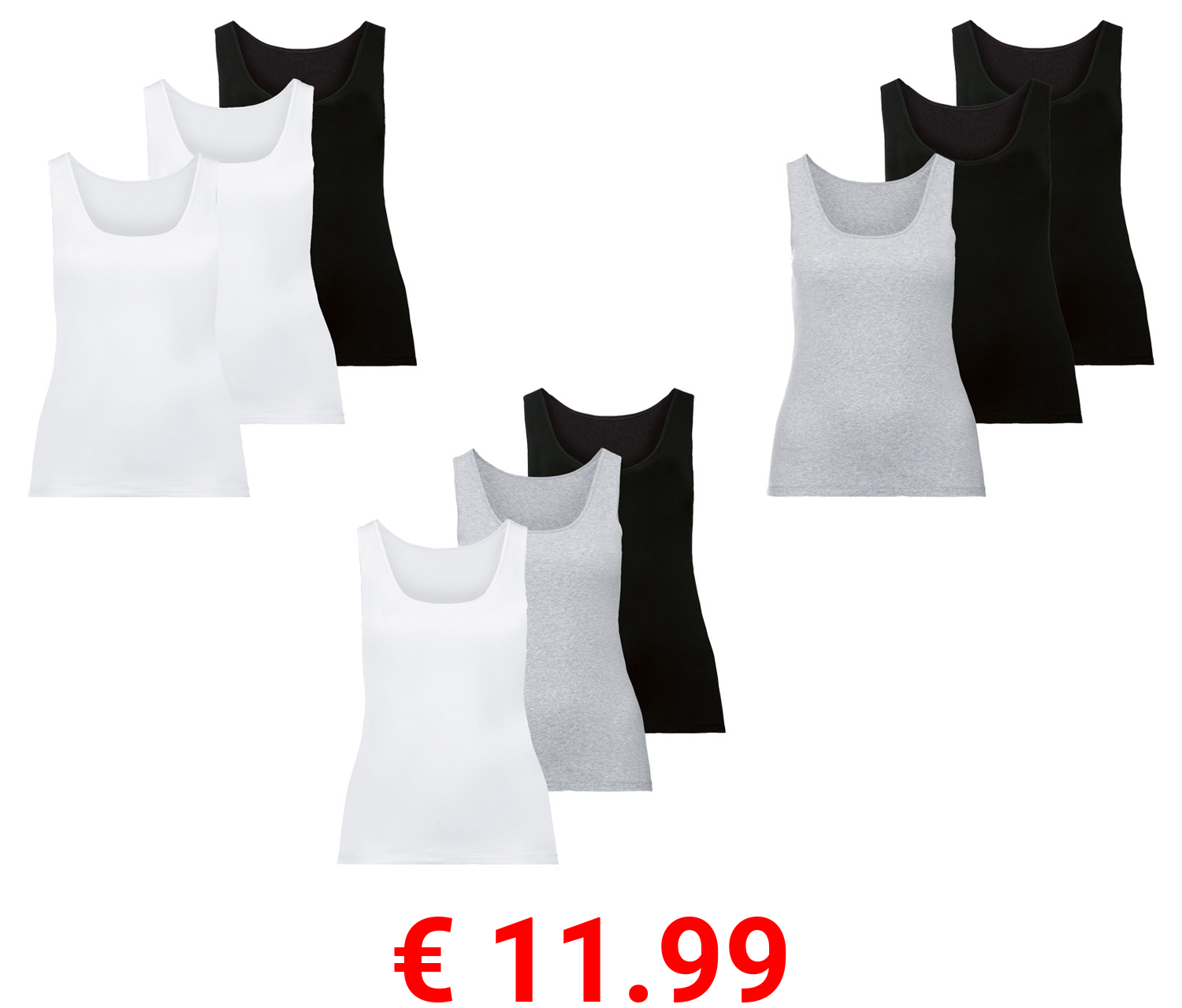 € 11.99 esmara® Damen Achselhemd, 3 Stück, mit hohem Baumwollanteil