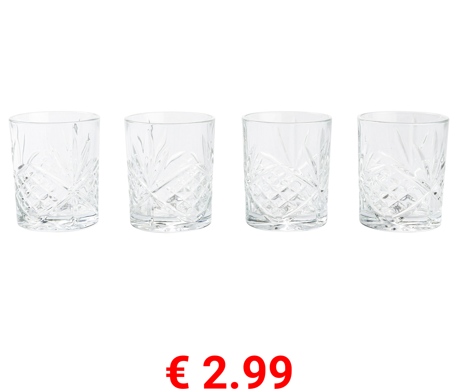 € 2.99 ERNESTO® Whiskeygläser / Longdrinkgläser, Schliffdesign, 4 Stück
