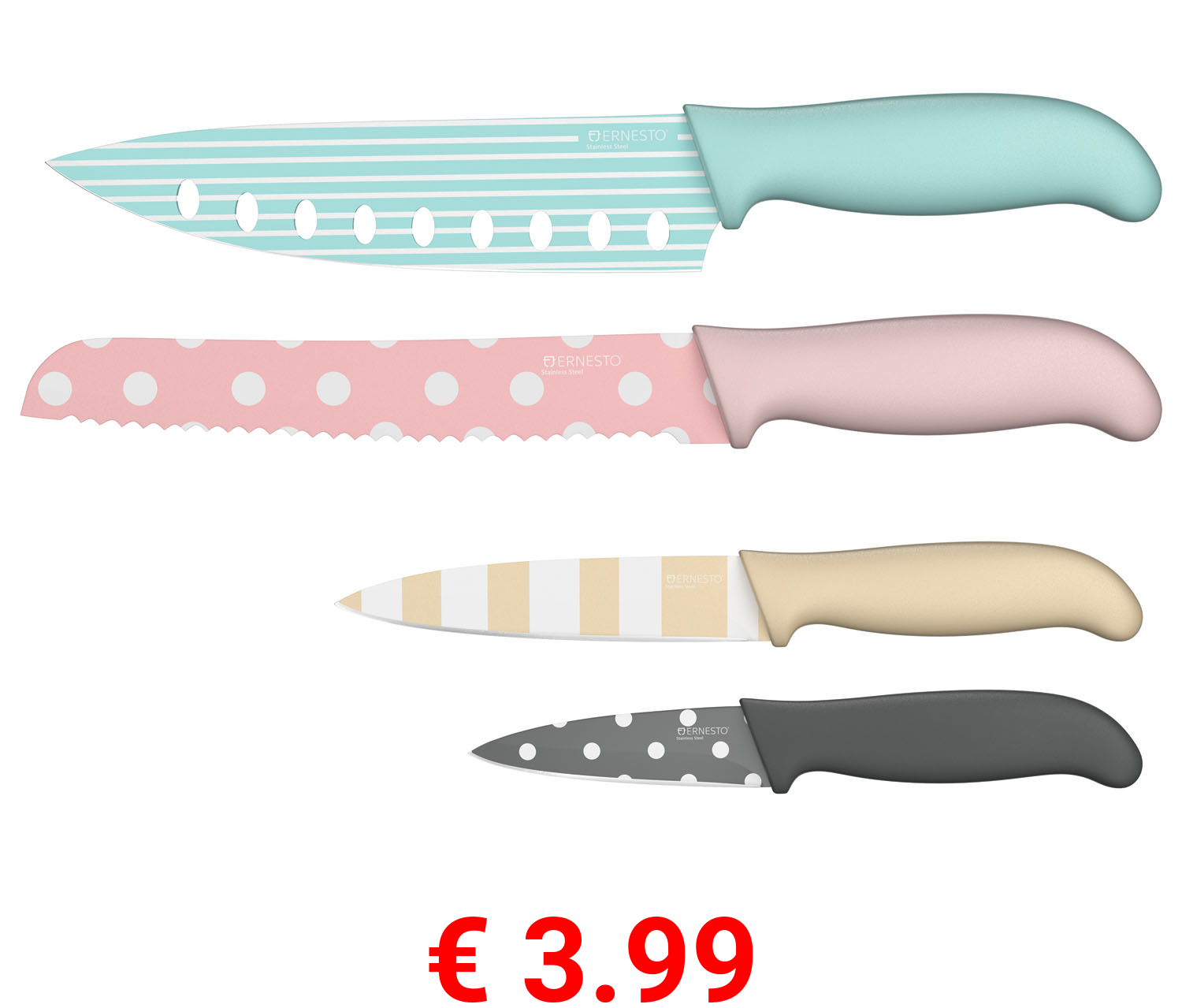 € 3.99 ERNESTO® Messerset, mit antihaftbeschichtete Klingen, 4-teilig