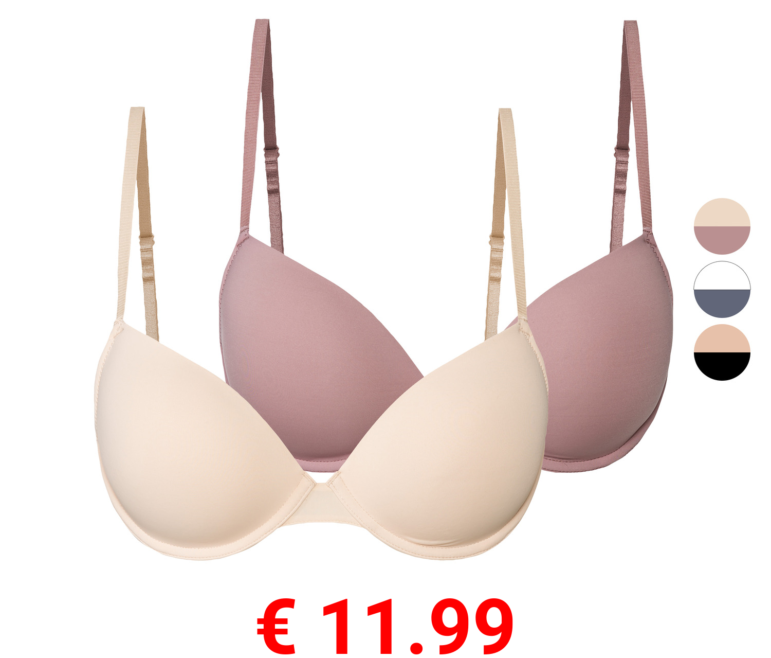 € 11.99 esmara® Damen T-Shirt BHs, 2 Stück, gepaddete Cups
